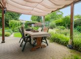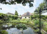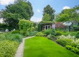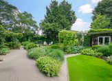 Deze fantastische, multifunctionele villa wordt omringd door een fraai aangelegde tuin met veel privacy en een uitstekende zonligging. Vanaf het overdekte terras of een van de andere terrassen, hebt u een prachtig uitzicht op de tuin met een rijke schakering, aan de seizoenen aangepaste beplanting. Blikvangers zijn de grote vijver, de kas en de tuinschuur. Zowel de kas als de tuinschuur beschikken over water en stroom. De tuinschuur is voorzien van een pannendak en dubbele, geïsoleerde wanden. De tuin is door een groene strook met struiken, bomen en een beukenhaag gescheiden van de openbare ruimte en biedt daardoor optimale privacy. Ten behoeve van beregening zijn een grondwaterpomp, een druppelslangsysteem door de hele tuin en een sproei-installatie aanwezig.