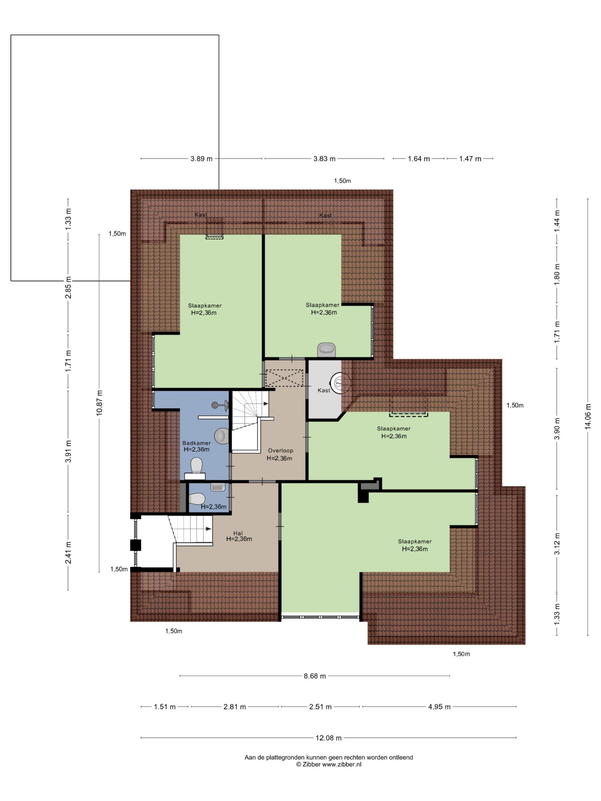 Zolder: In de nok van de woning is een L-vormige bergzolder met een maximale hoogte van 1.84 meter. De zolder biedt een zee van ruimte en is via een vlizotrap te bereiken.