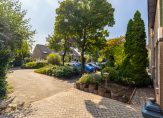 Vanaf de openbare weg leidt een brede inrit naar de oprit, waardoor je op eigen terrein kunt parkeren. Erg fijn is dat deze inrit door niemand anders wordt gebruikt, waardoor je heel rustig woont. Staat de auto geparkeerd, dan is het maar een paar stappen naar de voordeur.