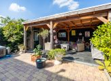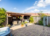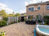 Vanuit de keuken loop je de ruime tuin in, die bijna 9 meter breed en circa 11 meter lang is. Deze tuin biedt zowel zon als schaduw, en naast stenen berging is in 2022 een fraaie overkapping gebouwd. Dit is een plek waar de bewoners veel tijd doorbrengen!