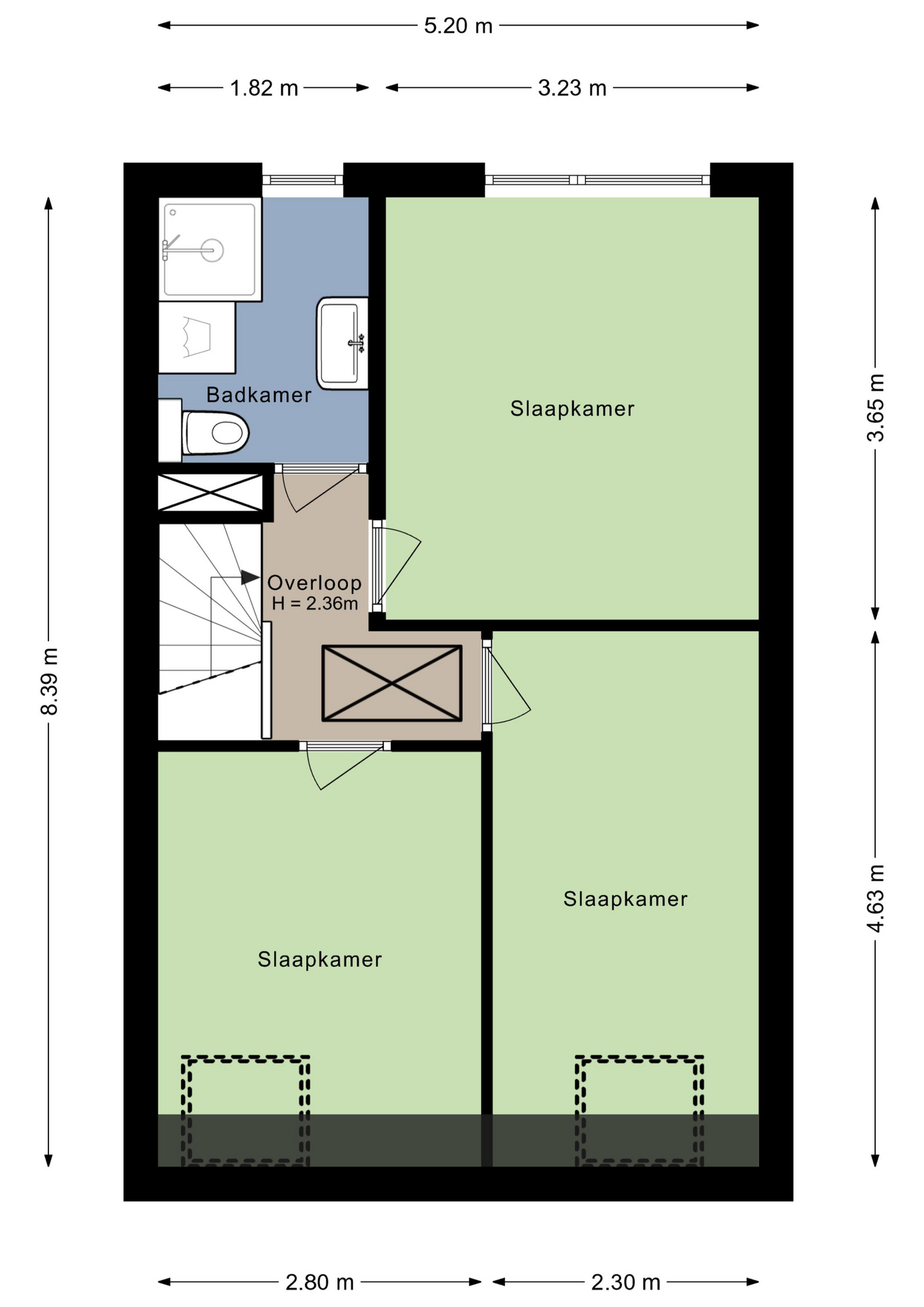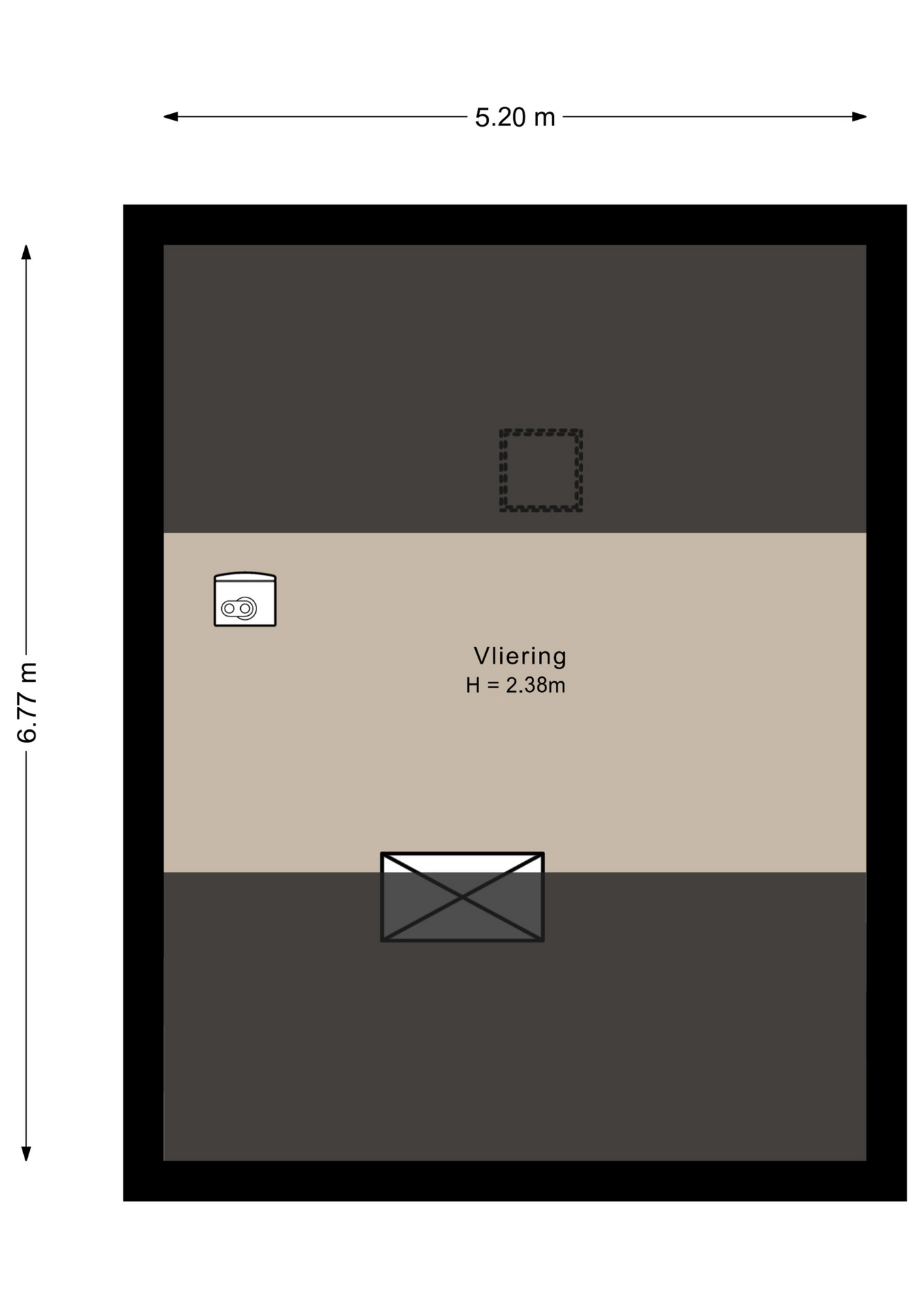 Op de overloop is de toegang tot een ruime zolder, met een dakraam en een nokhoogte van circa 2.38 meter. Het is mogelijk om hier een extra (slaap)kamer te creëren.