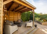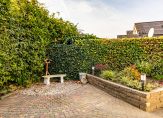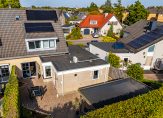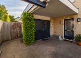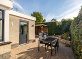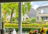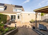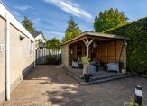 Vanuit de woonkamer en bijkeuken is de achtertuin op het zonnige zuiden te bereiken. Aan twee kanten staat een groene erfafscheiding en de houten schutting aan de linkerzijde is samen met de buren geplaatst. In 2015 is het tuinhuis met veranda geplaatst, met schaduw op het warmste moment van de dag en de fijne avondzon vanaf de westkant. Aan de linkerzijde is een eigen achterom, richting de oprit en de voortuin.