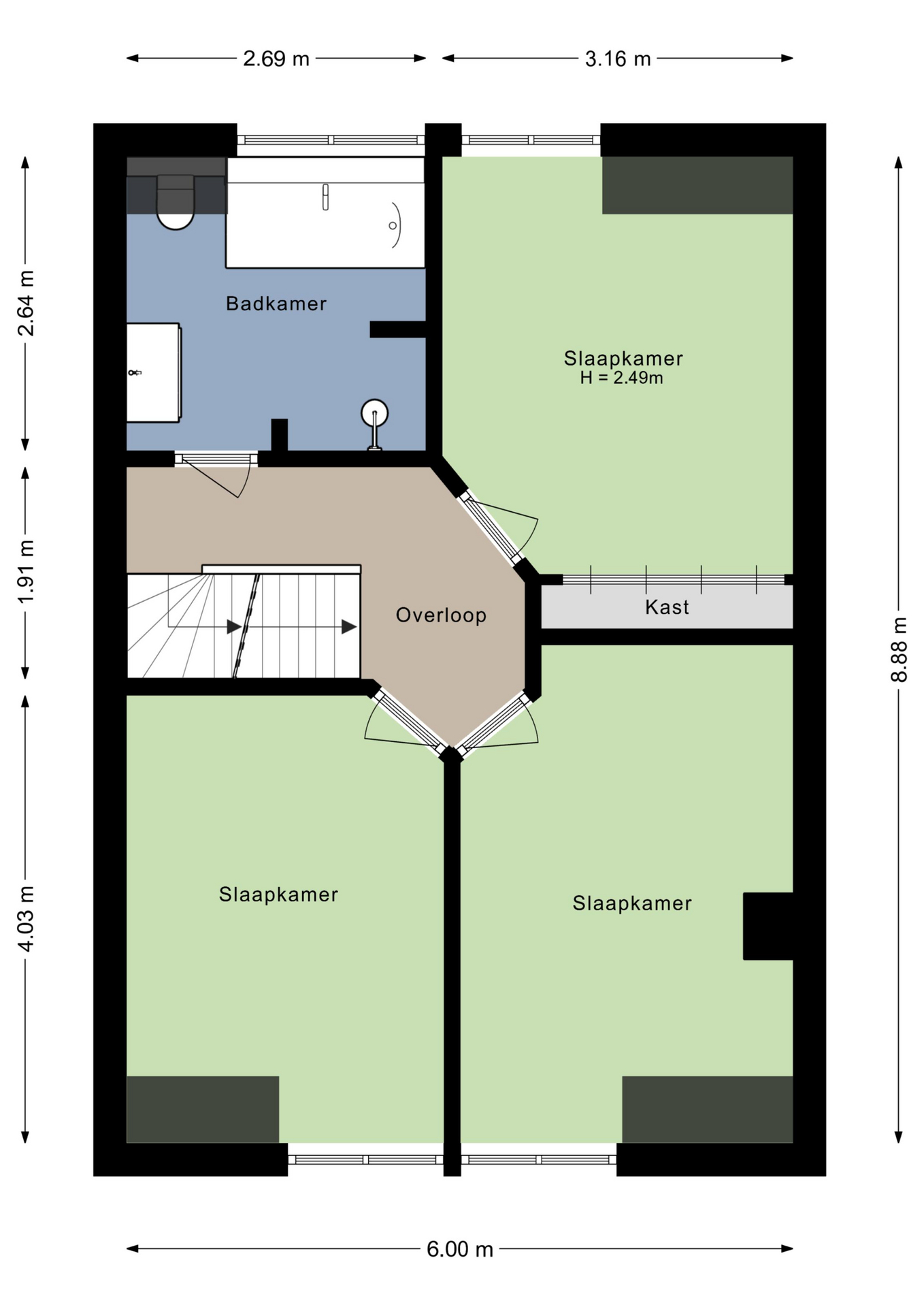 Wordt het een bergzolder, hobbyruimte of een vierde slaapkamer? De ruimte op deze verdieping is voor diverse doeleinden geschikt, zeker als je een groot dakraam of een dakkapel plaatst. Naast de trap is een berging gemaakt en ook in de schuinten van het dak is handige bergruimte.