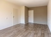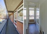 In de woonkamer is een deur naar het balkon, gesitueerd op het westen. Hier kijk je richting de rustige, brede straat en de gezamenlijke tuin.