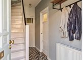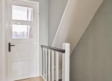 Welkom bij het huis met de mintgroene voordeur! Achter deze deur is de ruime hal met een hoog plafond en de trap naar de eerste verdieping. Sfeermakers zijn de tegelvloer, de oude deurbel en de paneeldeuren. Achter een van deze deuren is de trap naar de wijn-/provisiekelder. Ook de toiletruimte, met een wandcloset en dezelfde vloer als de hal, is fraai afgewerkt en ruim van opzet.