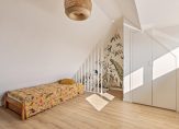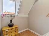 Vanaf de overloop zijn twee ruime slaapkamers, een kast voor de wasapparatuur en de ruime badkamer te bereiken. De steile, schuine dakvlakken met dakkapellen zorgen samen met de paneeldeuren voor slaapkamers met sfeer.