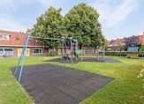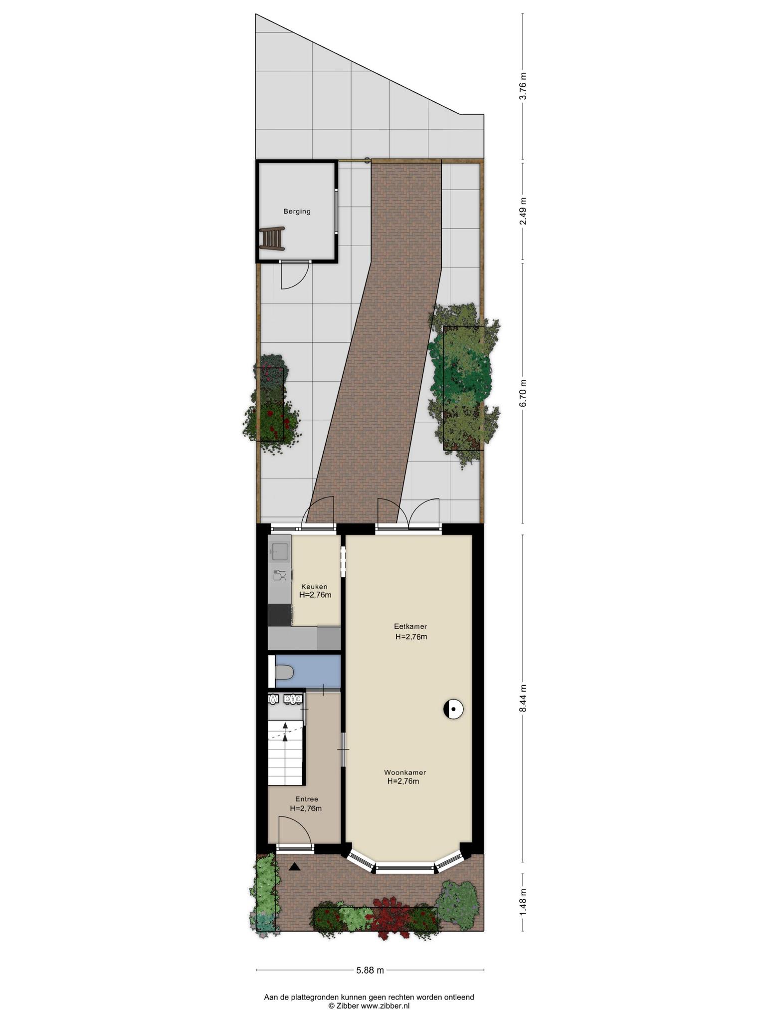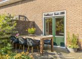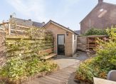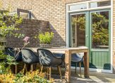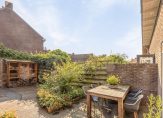 In de voortuin zie je mooie beplanting met witte, gele en roze bloemen. Dit geeft deze woning een fraaie uitstraling. Vanuit de woonkamer is de achtertuin te bereiken, gesitueerd op het noordoosten. Het grote terras nodigt uit om te gaan zitten en in het achterste deel van de tuin, bij de houtopslag, is ruimte voor een tweede terras. In de stenen berging is ruimte voor de fietsen en het tuingereedschap. En ga je met de fiets op pad? Via de poort is de steeg goed bereikbaar.