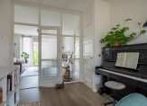 Een pui met grote ramen en een deur verbindt de woonkamer met een multifunctionele kamer, die thans de functie vervult van eetkamer en muziekkamer. Vanaf hier is het balkon, op het zonnige zuiden, te bereiken.