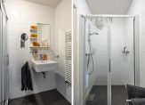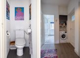 Dit instapklare appartement heeft twee slaapkamers, beiden met veel privacy en uitzicht naar de gezamenlijke binnentuin. Een inbouwkast en een kastenwand in de slaapkamers bieden praktische bergruimte. De moderne badkamer is ingedeeld met een ruime inloopdouche, wastafel, een spiegel met plankjes en een handdoekenradiator. Aan de overzijde van de hal is de toiletruimte met fonteintje.