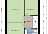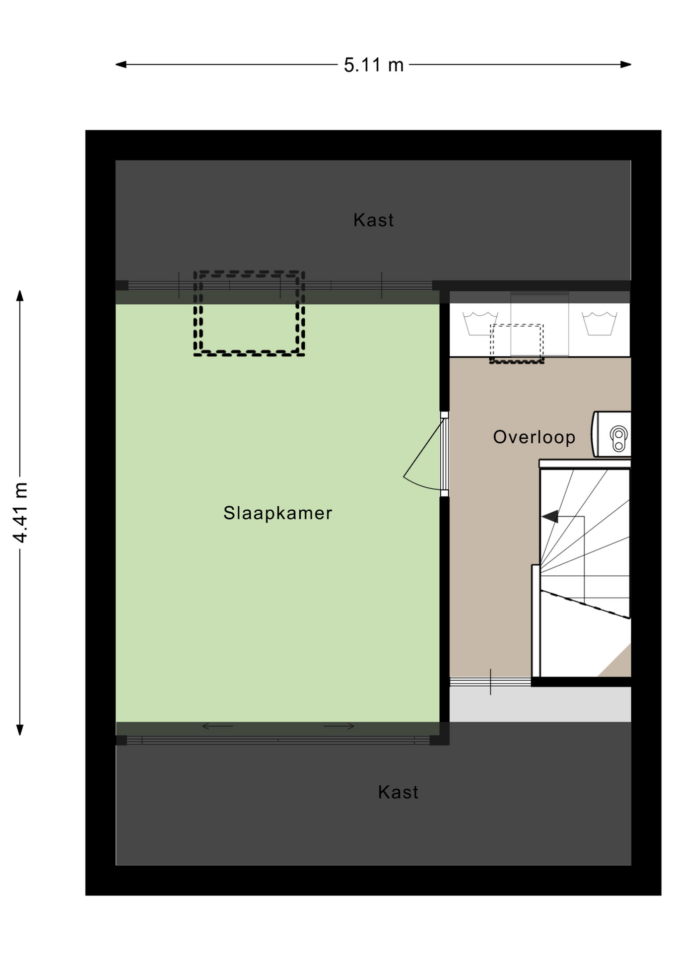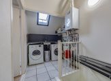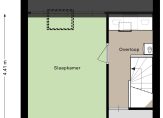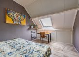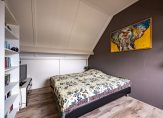 Er is een vaste trap naar de tweede verdieping, met twee ramen in het schuine dak en een hoge nok. Als eerste is er de overloop, met de HR-ketel en de aansluitingen voor de wasapparatuur. Aansluitend is de vierde slaapkamer, met een grote vloeroppervlakte en bergruimte in de schuinten van het dak.