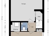 De werkkamer/kantoorruimte staat in verbinding met de hal, die toegang biedt tot de toiletruimte met fonteintje en de royale, inpandige garage. De garage heeft niet alleen een kantelpoort, maar ook een aparte loopdeur naar het mandelige binnenterrein (overdekt).