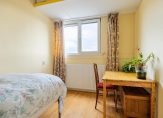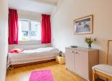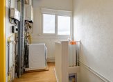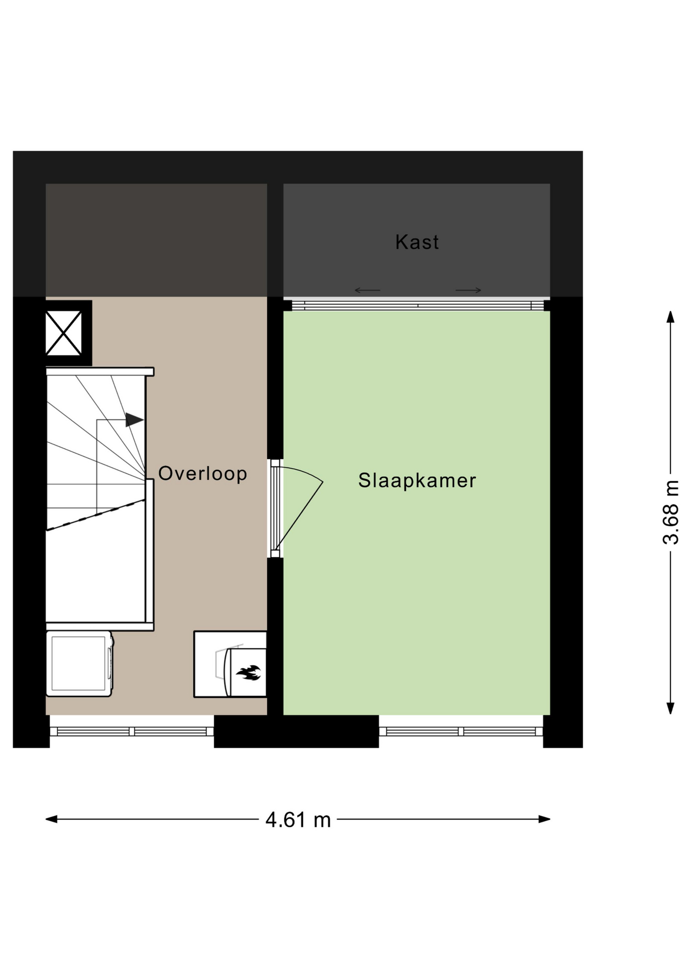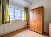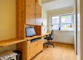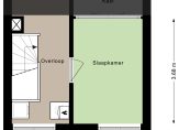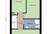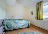Slaapkamer nummer vier is op de tweede verdieping, te bereiken via een vaste trap. Deze kamer heeft lichtinval aan twee zijden en, net als de overloop, laminaat op de vloer. Op de overloop, bij de HR-ketel, is de opstelling van de wasapparatuur.