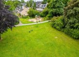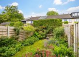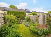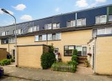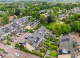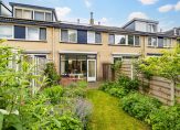 Vanuit de woonkamer heb je mooi uitzicht naar de achtertuin, op het zonnige westen. Hier geen grote tegels en grind, maar gras en mooi aangelegde plantenborders. Hier zie je bloemen in mooie kleuren, die een grote aantrekkingskracht hebben bij vogels en insecten. Bij het grote terras hangt een zonnescherm en achter in de tuin, bij het tweede terras, is een poort naar de steeg. Ook in de voortuin zie je veel groen, wat de woning een vriendelijke uitstraling geeft.