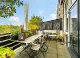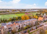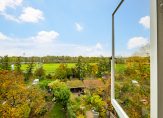 Vanuit de woonkamer en keuken is het balkon op het noordwesten te bereiken, met uitzicht richting het groen en de sportvelden. Er is genoeg ruimte om met meerdere mensen te borrelen en te eten, met de late middag- en avondzon als warmtebron.
