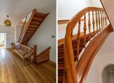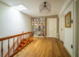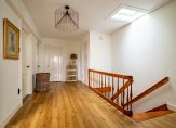 Blikvanger op de overloop is de trap naar de tweede verdieping, gemaakt in een tijd van vakmanschap en handwerk. In het achterste deel van de overloop is het moderne gastentoilet, ingedeeld met een wandcloset en een fonteintje.