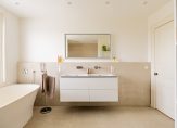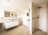 Door de lichtkoepel valt veel licht naar binnen, bij de trapopgang en op de overloop. Vanaf hier zijn een inbouwkast, drie slaapkamers, een wasruimte/dressing en de badkamer (2019) te bereiken. In de badkamer zijn licht, luxe en alle comfort aanwezig. Bij het raam staat een prachtig bad en verder zijn er een toilet, een inloopdouche en een dubbel wastafelmeubel. Alles klopt, van het tegelwerk tot de verlichting en kranen.