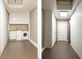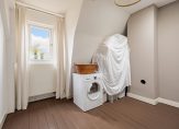 Ook in de royale berging zijn de aansluitingen voor de wasapparatuur. Verder zijn hier een vaste kast, een kastenwand en de opstelling van de HR-ketel.