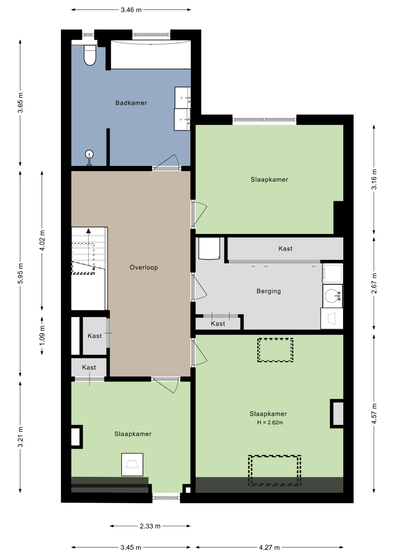 Bij de bovenwoning hoort een ruime privéberging, gesitueerd op de begane grond. De berging is te bereiken via het achtergelegen weggetje.