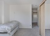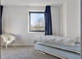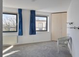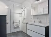Aan de rustige kant van het gebouw zijn twee ruime slaapkamers en de badkamer.  In de hoofdslaapkamer zijn aan twee kanten vaste kasten gemaakt, voor kleding en andere spullen. De tweede slaapkamer is een ideale logeerkamer, werkkamer en/of hobbyruimte. Tussen de slaapkamers is de badkamer, te bereiken vanuit de hal. Hier zie je geheel betegelde muren, mooie vloertegels en een ruimtelijke indeling. De inloopdouche met glazen wand is extra ruim en verder zijn er een tweede toilet, designradiator, wastafelmeubel en een spiegelkast.