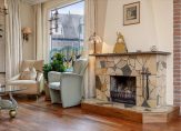 De L-vormige woonkamer heeft lichtinval aan drie zijden, met name op het zonnige zuidwesten. Mooie elementen zijn de parketvloer, schouw met open haard en de mooie verdeling tussen het zit- en eetgedeelte. Er is genoeg ruimte voor een bureau en, als er een gezin komt wonen, voor een speelplek.