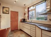 Vanuit de hal is de keuken te bereiken, die grenst aan de bijkeuken. In de keuken staat een dubbele wandopstelling met een vaste ontbijttafel, veel bergruimte en alle benodigde inbouwapparatuur van het merk Siemens: een keramische kookplaat, afzuigkap, vaatwasser, koelkast en een combi-oven/magnetron. De verwarmde bijkeuken met inbouwkast biedt ruimte aan de wasapparatuur en een vriezer. Aansluitend is een berging, te bereiken vanuit de tuin.