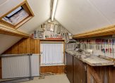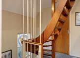Het trappenhuis met glas in loodramen en de overloop met vaste trap naar de tweede verdieping zijn het toppunt van sfeer en stijl. Aan de overloop grenzen drie slaapkamers, de badkamer en een aparte toiletruimte.