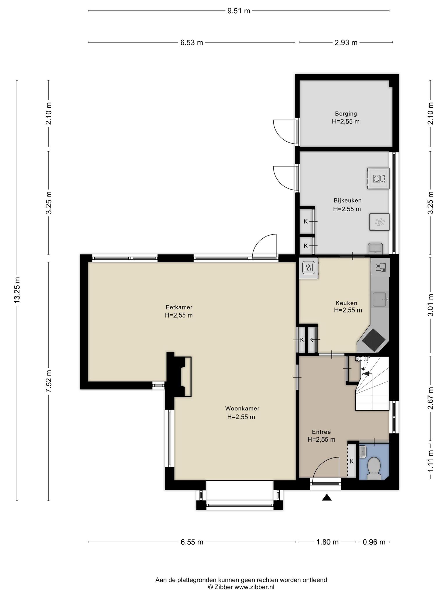 –	De hele woning is, m.u.v. de voorgevel en de hal, voorzien van rolluiken;