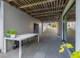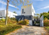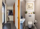 Bij de overkapping, aan de linkerzijde, is de entree van de villa. In de hal zijn de fraaie toiletruimte en een inpandige, verrassend ruime berging waar een vriezer, de wasmachine en droger kunnen staan.