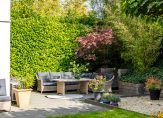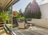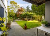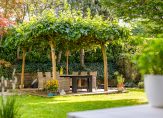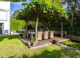 De voor-, zij- en achtertuin zijn aangelegd met gevarieerde beplanting, van bomen tot struiken en hagen. Er zijn meerdere terrassen, zowel met zon als schaduw, en naast het terras met plataanbomen is een mooie vijver met waterlelies en andere beplanting aangelegd. Het dakterras, te bereiken vanuit de woonkamer, is eveneens van groot formaat. Ook hier geniet u volop van de zon, van ’s ochtends tot in de avond…
