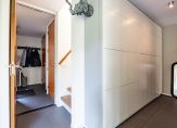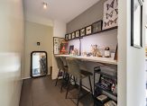 Het tweede deel van de hal staat in open verbinding met een hobbyruimte/werkplek en de woonkeuken. Bij de hobbyruimte ziet u een grote kastenwand en een maatwerk bureau, waar genoeg plek is voor twee hoge stoelen.