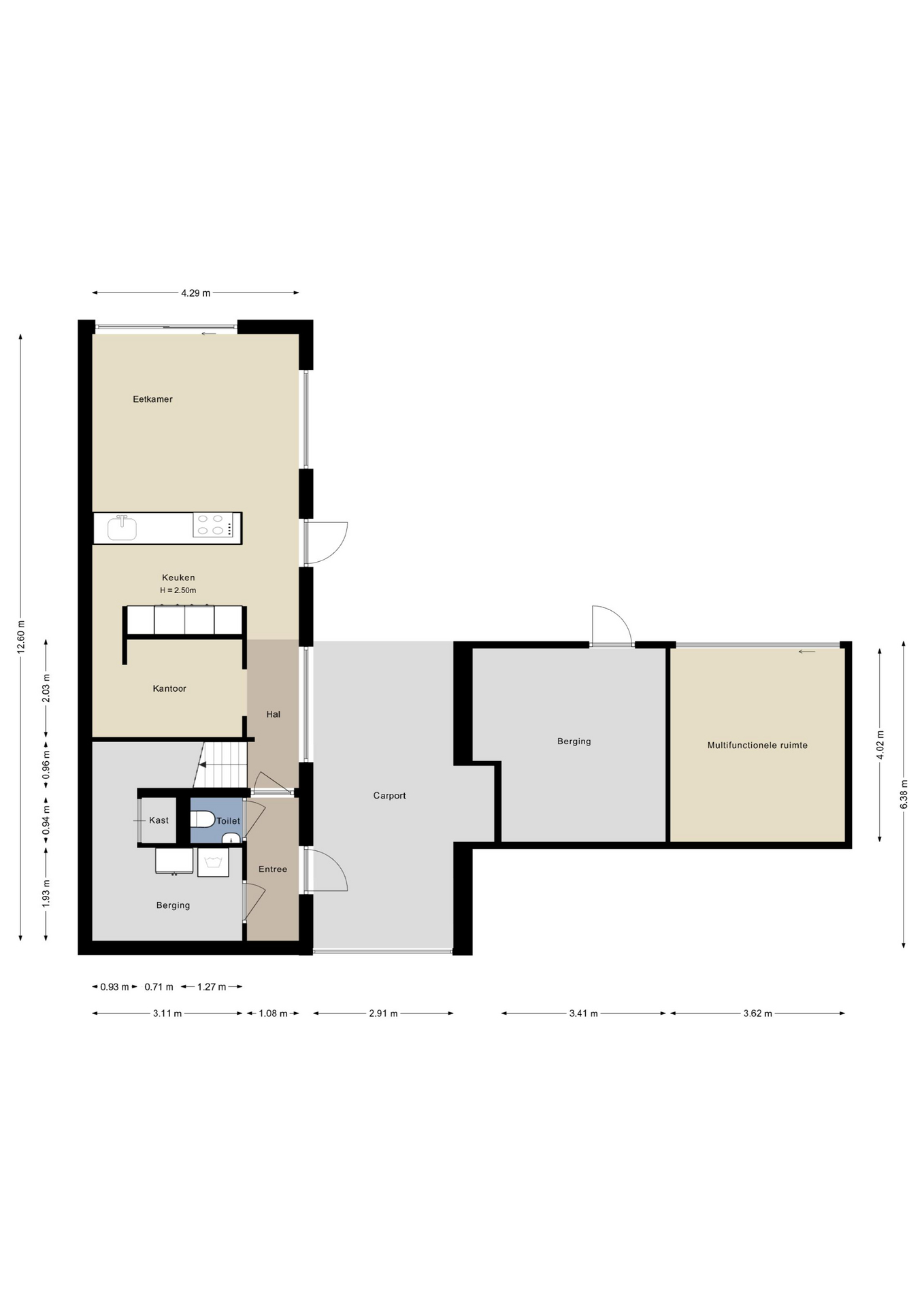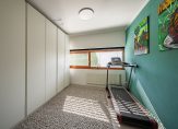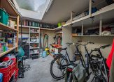 Rechts van de overkapping zijn een ruime (fietsen)berging en een multifunctionele ruimte met een schuifpui naar de tuin. Deze ruimte is nu in gebruik als muziekruimte, maar een invulling als kantoorruimte/werkkamer, atelier of chillruimte van de kinderen is ook mogelijk.