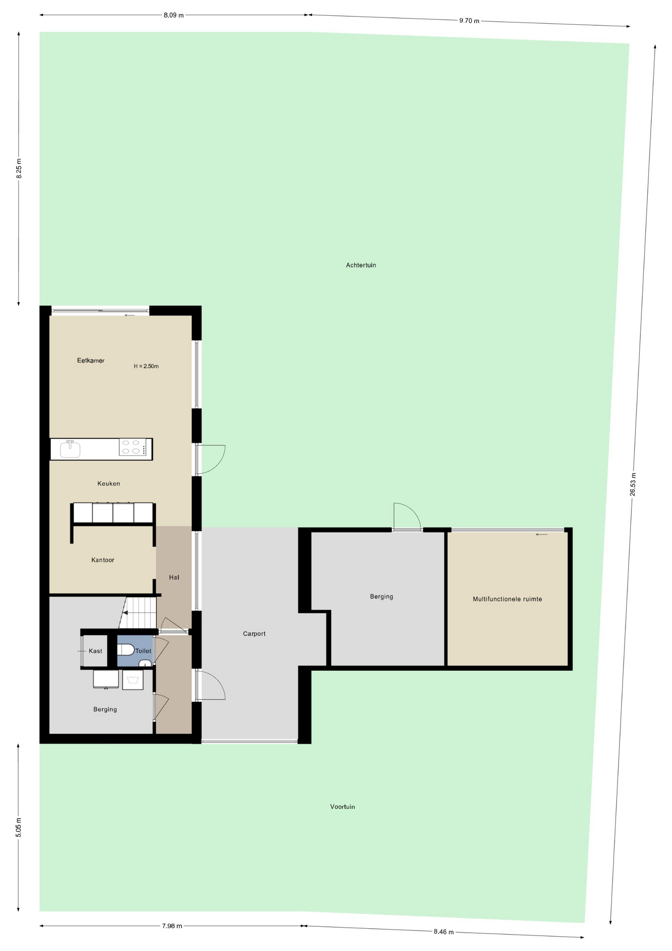 –	Berging en een multifunctionele ruimte (muziekkamer) in de tuin;