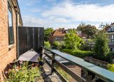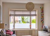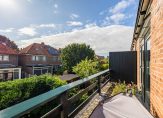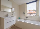 Wat op de overloop opvalt, zijn de lichtinval en de vaste trap naar de tweede verdieping. Vroeger was die trap er niet, want toen had deze woning een zolder. Aan de voorzijde is een ruime slaapkamer met een dakkapel, en de master bedroom met openslaande deuren naar het balkon bevindt zich aan de achterzijde. De badkamer heeft een ligbad, inloopdouche en een wastafelmeubel met spiegel. Het toilet op deze verdieping is in een aparte ruimte, te bereiken vanaf de overloop.