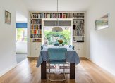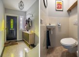 De entree, met een donkergroene voordeur, is het eerste teken dat dit een huis met sfeer is. In de hal zie je de mooie trapopgang, met een donkere loper, en de originele granitovloer. Aan het einde van de hal, aan de linkerzijde, is de toiletruimte met fonteintje en achter de naastgelegen deur is een trap naar de wijn-/provisiekelder.