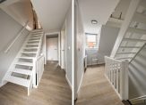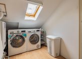 De wasmachine en droger staan op de tweede verdieping, naast de hr-ketel. Een dakraam zorgt voor lichtinval en er is genoeg plek om een wasmand en andere spullen neer te zetten.