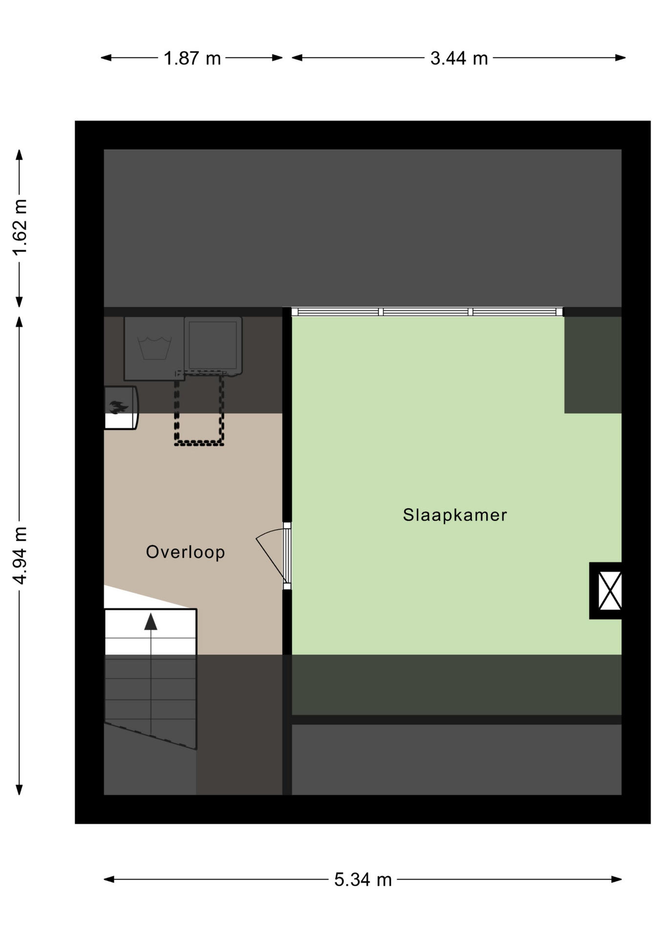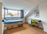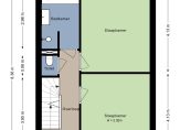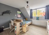 De grootste ruimte op deze verdieping is een ruime slaapkamer, met een dakkapel aan de achterzijde. Ook deze kamer, met bergruimte in de schuinte van het dak, is van goed formaat.