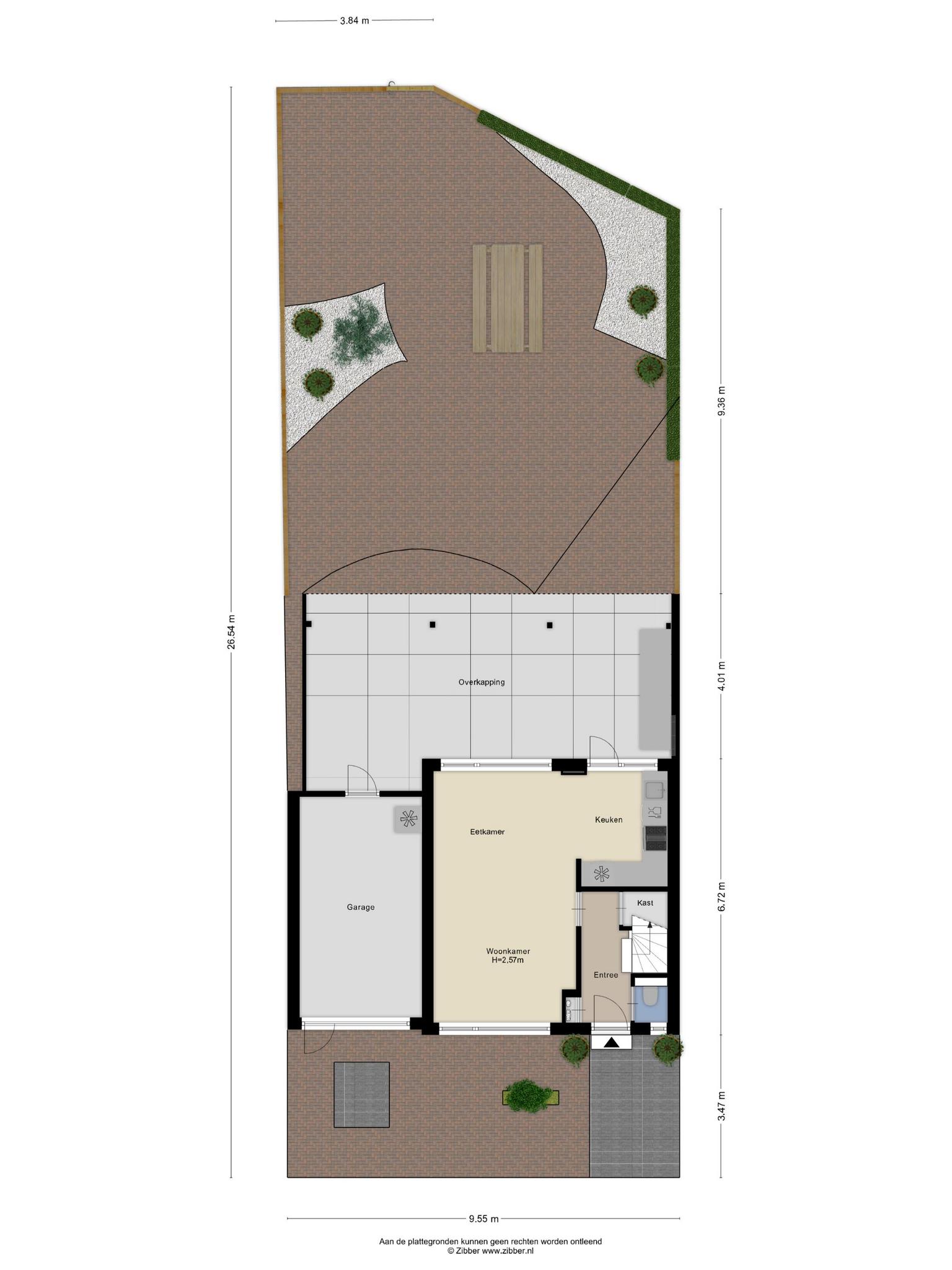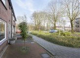 De voortuin is grotendeels bestraat en het groenblijvende boompje is zo geplaatst, dat er minder inkijk in de woonkamer is. Zo hoef je niet de hele dag de luxaflex dicht te doen!