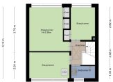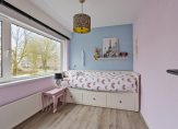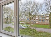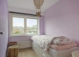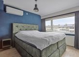 In de slaapkamer aan de voorzijde is de opstelling van de wasapparatuur en in totaal zijn er drie inbouwkasten, verspreid over twee slaapkamers. In alle slaapkamers en op de overloop ligt laminaat en de kozijnen zijn van kunststof, met draai-/kiepramen en HR-glas.