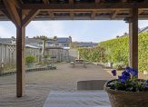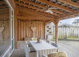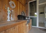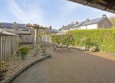 Vanuit de woonkamer en keuken is de brede achtertuin op het westen te bereiken. Blikvanger is het overdekte terras van circa 38 m2, gebouwd van stijlvol hout en met een fraaie buitenkeuken (ter overname). De rest van de tuin is ingedeeld met schuttingen, bestrating en onderhoudsvriendelijk aangelegde borders.