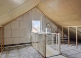 Een vaste trap geeft toegang tot de zeer ruime zolderkamer met een circa 3 meter hoge nok en een groot zijraam. Naast de trapopgang hangt de HR-ketel (Nefit). De zolderkamer is heel geschikt om een extra slaapkamer te realiseren en kun je in de schuinten van het dak veel spullen opbergen.