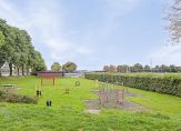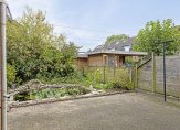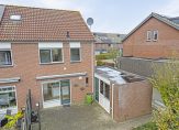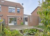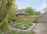 Niet alleen de woning, maar ook de tuin is heel ruim. In de voortuin zie je veel groen en naast de oprit, waar twee auto’s kunnen staan, zorgt een lange rij hortensia’s voor kleur in de straat. Naast de garage is een eigen achterom naar de achtertuin, gesitueerd op het zuidoosten. Vanaf het grote terras kijk je naar de vijver en het groen in de tuin.