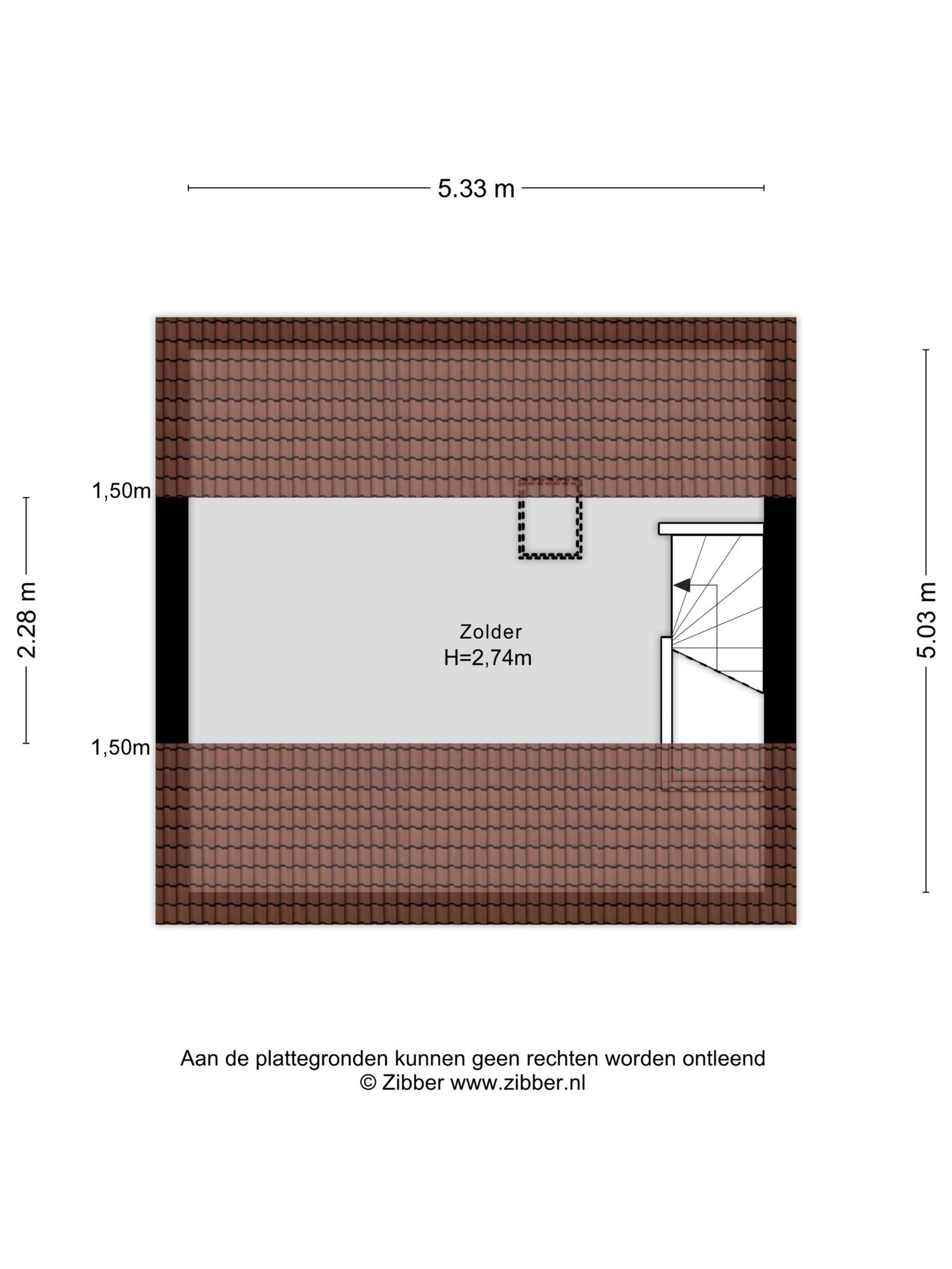 Er is een vaste trap naar de zolderkamer, met een dakraam en een nokhoogte van 2.74 meter. Deze kamer is onder andere geschikt als gameroom, werkkamer en slaap-/logeerkamer.