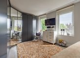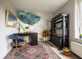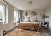 Dit fijne appartement heeft twee slaapkamers, waaronder de ruime master bedroom. Blikvanger in deze kamer is het behang op de muur achter het bed, met mooie bloemen in rustige kleuren. Ook in de tweede slaapkamer, in gebruik als werk/studeerkamer, zie je prachtig behang op een van de muren.