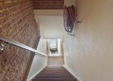 Links van de winkel is de entree van huisnummers 32 en 32a. Aan de buitenzijde zijn de intercom en twee brievenbussen, beiden met een eigen postvak aan de binnenzijde. Vervolgens ga je met de trap naar de eerste verdieping, waar het appartement gesitueerd is. Goed om te weten; de maisonnettes op de tweede verdieping hebben een eigen entree aan de Rodetorenstraat.