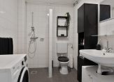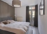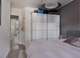 Aan de achterzijde is de ruime tweepersoons slaapkamer, met openslaande deuren naar het balkon. Naast de slaapkamer is de badkamer met een inloopdouche, toilet, wastafel en de wasmachineaansluiting. De badkamer grenst net als de slaapkamer aan een portaal. Naast het portaal is een deur naar de inpandige berging.