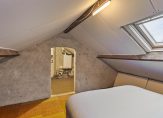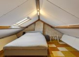 Aan het einde van de vaste trap is een luik, die toegang geeft tot de tweede verdieping. De nokhoogte is circa 1.82 meter en aan de achterzijde is een dakraam geplaatst. De grootste ruimte is in gebruik als logeerkamer en op de overloop zie je de HR-ketel, ventilatie-unit en de omvormer van de zonnepanelen.