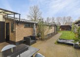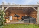 Vanuit de keuken loop je, via een overkapping, naar de stenen berging. Deze goed afgewerkte ruimte is de plek voor een vriezer, de wasmachine en droger. Achter de houten schuifdeur is de garage met een bergvliering en een carport. Zet je de auto onder de carport dan kan de garage worden gebruikt voor de motor, scooter, fietsen en andere spullen. Het dak van de garage is in 2023 vernieuwd, waarbij het asbest is verwijderd.