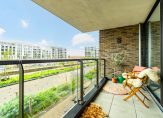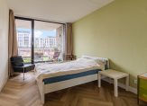In het linkerdeel van het appartement zijn twee slaapkamers, de badkamer en een inpandige berging. Beide slaapkamers hebben, net als de woonkamer, een deur naar het balkon en mooi uitzicht richting de binnenhaven. Een van de kamers is in gebruik als werk-/studeerkamer en in de master bedroom staat een maatwerk garderobekast met schuifdeuren.