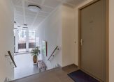 Dit appartement bevindt zich, gezien met de rug naar de kade, in het derde gebouw van links. Aan de buitenzijde zijn de brievenbussen en de video-intercom. Met de trap en lift zijn de parkeerkelder, berging en het appartement in no-time te bereiken. Met de trap is een goede optie, want je hoeft maar één trap naar boven te lopen.