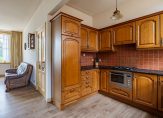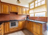In de keuken staat een massief eiken U-opstelling, met een ronde spoelbak en een kunststof aanrechtblad. De gaskookplaat, afzuigkap, combimagnetron en koelkast zijn ingebouwd. Ga je de keuken vernieuwen, dan is dit je kans om een keuken naar eigen smaak en indeling te (laten) plaatsen.